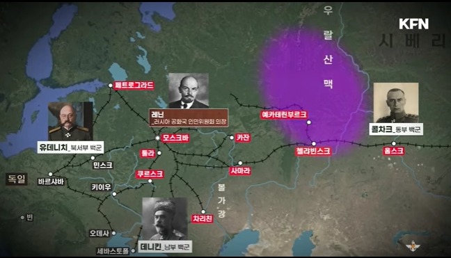 적군은 그런대로 혁명에 대한 의지로 똘똘 뭉쳤으나 백군은 동상이몽이였다.코르닐로프와 알렉세예프는 적백내전이 시작되기도 전에 서로 잘났다며 으르렁댄다.그러다가 둘다 전사하는 비극을 맞게 된다.이 뒤를 이은 사람들이 콜차크,데니킨,유데니치였다.구심점이 이들에게 없었다.러시아 황제 니콜라이가 살아있었다면 뭉칠텐데 그러지 못하게 된다.니콜라이 일가족은 예카테린부르크에 감금되어있었다. 이지역에 우랄 혁명 세력이 있었는데 이들은 레닌과 트로츠키조차도 통제를 못하고 있었다.이들이라면 니콜라이가 죽지는 않았을 텐데 우랄 혁명 세력은 이들이 두 눈을 뜨고 있는 것을 볼 수가 없었다.결국 이들에 의해 니콜라이 황제 가족들은 모두 암살당한다.