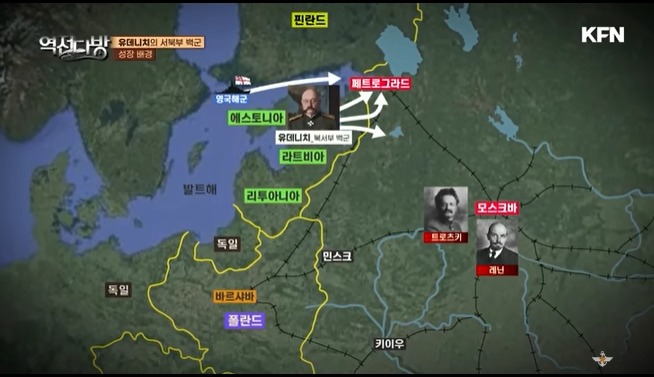 1919년 상테페테르부르크로 백군이 공격을 들어오게 된다.방어 책임자는 레닌그라드 심복인 지노브예프였으나 공세가 닥치자 정신을 못차리고 패닉에 빠진다.트로츠키는 장갑열차를 타고 직접 페테르부르크로 오게 된다.거기서 시민들을 독려하고 직접 전장을 지휘하게 된다.모스크바와 페테르부르크는 철도로 연결되어 있었는데 이 철길을 따라 병력을 계속 투입하게 된다.시민들도 백군이 들어오는 것을 경계한다.백군이 지배하면 예전 재정러시아 시대로 돌아가는 건데 이러면 골치아팠다.공장노동자들은 볼셰비키도 별 탐탁지 않았지만 백군은 극혐했다.스스로 야근을 자처하며 군수품 생산에 열을 올리게 된다.막상 백군이 진격하려 들자 여러 인접국은 협조를 안해준다.지리상으로 핀란드를 통해 페테르부르크로가면 좋았으나 핀란드는 이를 거부한다.기본적으로 백군은 러시아 제국 복원으로 발트 3국,핀란드 이런 나라들은 러시아 제국 에 편입 대상이였다.여기에 레닌이 외교전을 벌인다.발트 3국을 꼬득여 우리에게 협조하면 독립을 시켜주겠다고 한다.결국 백군은 패퇴한다.백색내전에서 트로츠키의 활약은 두드러졌으나 나중에 권력 투쟁에 밀려나면서 트로츠키는 역사책에서 사라지게 된다.