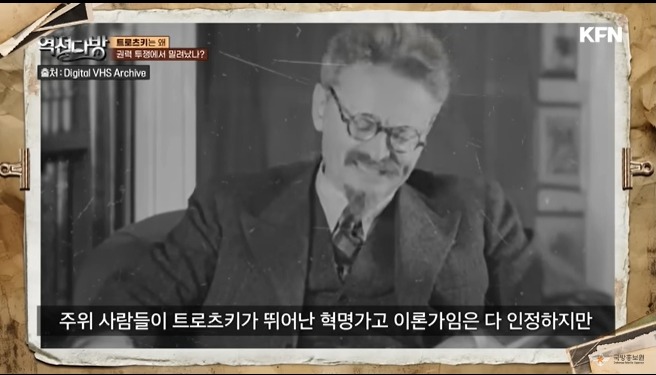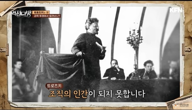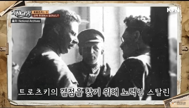 스탈린의 강력한 경쟁자는 트로츠키였다.적백내전을 승리로 이끈 트로치키의 지도력은 무시할 수 없었다.스탈린은 어떻게 하면 트로츠키를 밀어낼까 고민한다.스탈린은 1913년에 트로츠키가 조지아 지역 볼셰비키에 보낸 편지를 입수하게 된다.이 편지에는 레닌에 대한 험담이 포함되어 있었다.건 수를 잡은 스탈린은 트로츠키를 추출한다.하지만 이 편지만으로 트로츠키가 몰락한 것은 아니다.트로츠키는 혼자 잘난 사람이였다.다른 사람과 논쟁을 하면 이길때까지 상대를 밟고 자존심도 뭉개는 사람이였다.긴 시간 여러 사람이 합의한 내용도 트로츠키가 불쑥 나와서 난 반대일쎄 하면서 파토를 놓는 일도 다반사였다.트로츠키는 장갑열차안에서 [나는 일부러 사람과 거리를 둔다]라고 말하기도 한다.그게 자신을 사람들이 우러러 보게 하는 방법 즉 카리스마를 발휘한다고 생각한 것이다.스탈린은 이와 반대였다.스탈린은 사람들과 잘 어울렸고 무엇보다 사람들의 경계심을 풀게 하는 묘한 재주가 있었다.주장자체도 스탈린이 비교우위였다.트로츠키는 나라밖까지 혁명을 수출해야 한다고 주장하고 있었고 스탈린은 우리부터 내실을 다지자고 주장한다.젊은 세대 당원들은 스탈린에 힘을 실어주게 된다.스탈린은 레닌의 뒤를 이어 소련을 통치하게 된다.