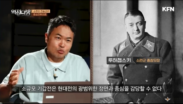 소련은 전차 수준이 높았다.양과 질 모두를 다잡았다.특히 현가장치(서스펜션)이 혁신적이였다.당시 전차들은 판스프링으로 충격을 흡수한데 비해서 소련 전차는 바퀴의 암이 충격을 흡수하게 된다.이걸 미국인 크리스틴이 발명했는데 미국에서는 외면 받게 된다.스탈린이 무기에 좀 관심이 있어서 뭐좀 없나 하고 들여다 보다 이걸 보게 된다.이 서스펜션의 판권을 사게 된다.이러다 보니 궤도가 끊어져도 바퀴자체로 달릴 수있는 전차인 BT 시리즈가 탄생하게 된다.이걸 토대로 T-26전차가 나오게 된다.만들고 정비가 쉬워 대량 생산된다.그리고 전선돌파용인 T-28도 나오는데 망작이 된다.포탑이 여러개여서 개대를 했으나 사각도 많고 장갑도 얇아 효용이 없었다.하지만 이 망작으로 독일에게 기만전술을 쓰는 효과가 난다.독일이 소련 전차에 대해 우습게 본것이다.게다가 스페인 내전과 핀란드 겨울전쟁에서 보여준 소련 전차 성능에 독일은 소련 전차를 한 수 아래로 보는 대형 실수를 하게 된다.하지만 뒤로 소련은 T-34와 KV 전차를 준비하고 있었다.전술도 준비한다.투하쳅스크는 광할한 소련땅에서 대규모 기갑전이 벌어질 것을 예상한다.전차 부대를 3겹으로 준비하고 1겹은 희생을 감수하면서 두들기고 약한 쪽이 관측되면 2파와 3파가 재빨리 적 중심으로 기동하여 적을 섬멸한다는 교리를 준비한다.하지만 이런 규모로 운영하려면 뒤에 보급 트럭이나 이런게 받쳐주어야 했다.대규모 작전 시뮬레이션은 잘 되지 않게 된다.더군다나 스탈린의 대숙청으로 군지휘관까지 붕괴되어 기갑전은 이론에 머물게 된다.