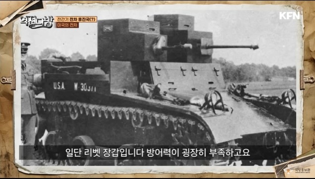미국은 전차 후진국이였다.보유하던 전차도 모두 폐기 처분한다.1936년이 되서야 차세대 전차를 만든다.M2 경전차 시리즈를 선보이게 된다.미국도 전차를 보병 부속품으로 여기고 있었다.비행기도 아닌데 장갑에 리벳을 쓴다.이게 접합하고 가공이 쉽다고 한다.이러다 보니 방어력이 취약했다.미군은 설마 1차대전같은 전쟁이 또 일어나겠나하고 방심하고 있었다.그래도 몇몇 선진적 지휘관이 있어 기갑학교를 세우게 된다.미국의 장점이 있었다.막강한 민간산업이 있었다.자동차 공업은 이미 세계 최고 수준이였다.전쟁에 나간다고 하자 엔진니어들이 대거 군수 산업에 투입되어 민수에서 검증된 엔진이 그대로 전차 엔진으로 들어가게 된다.1940년대에 들어서 미국은 강력한 전차를 선보인다.버스 엔진 2개를 전차에 넣어서 고출력 엔진 전차를 만든다.다른 국가들이 엔진 출력에 애를 먹고 있는 시기에도 미국은 이 문제가 없었다.그만큼 미국의 산업 능력은 타의 추정을 불허했다.