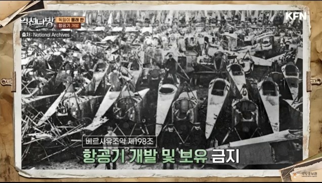 독일은 베르사유조약으로 공군이 해체되는 비극을 맞는다.민간 항공기만 개발할 수 있었다.소련과의 비밀 협정으로 독일은 전투기시재기를 만들게 된다.하인켈과 아라도를 제조해서 테스트를 소련 비행장에서 하게 된다.게다가 민간 항공도 엄청 발전시킨다.여차하면 민간 항공기를 전투기나 폭격기로 바꿀 생각을 한 것이다.글라이더 클럽도 만든다.장래의 조종사를 양성하기위해 어렸을 때 부터 창공의 꿈을 키워주게 된다.1935년 독일 공군 루프트파페가 창설되고 그 수장으로 괴링이 임명된다.