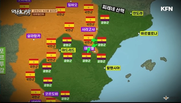 공화군 병력은 35만 정도였고 프랑코가 이끄는 국민군은 25만 정도였다.병력은 적었지만 공화군은 프랑코라는 구심점이 있었다.1936년말 프랑코 정권을 세우고 다음해 4월 반대파까지 일거에 제거하면서 절대 권력을 쥐게 된다.군대 역시 단일체계가 확립되어 일사분란하게 움직인다.공화군은 반대였다.병력은 많다고 하나 민간인 중심이었고 좌파 내에서도 자유주의자,무정부주의자,사회주의자가 혼재되면서 머리통이 갈라져있었다.군대내에서는 특히 공산주의자가 많았고 이들은 병사들을 강압 통치하기 일쑤였다.실전 경험도 없는 지휘관이였고 여기에 감나와라 배나와라하는 정치위원 제도까지 도입된다.보급체계도 엉망이였다.무기가 중구난방으로 호환이 되지 않아 지속적 전투가 어려웠다.당시 공화군의 분열 양상은 후에 영화로까지 만들어 진다.