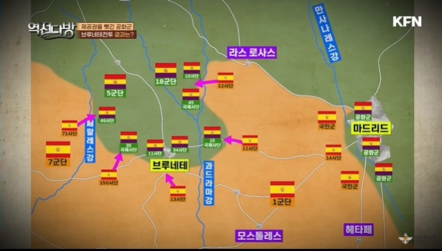 공화군 내에 공산세력은 브루네테 공세를 자기들 끼리 하려 든다.이 전투의 승리로 무정부주의자나 자유주의 세력의 기를 꺽고 자신의 지분을 높일 생각이였다.국민군은 마드리드 공세에 집중하고 있고 이틈에 이쪽으로 치고 들어가면 마드리드로 향하던 국민군 공세를 줄일 수 있었고 돌파구 마련도 가능했다.수도는 마드리드이고 브루네테는 우리나라로 치면 인천 정도 거리에 있는 위성도시였다.쭉 치고 들어가야 하는데 벽에 부딪힌다.원대한 공지 합동 전투를 하려 했으나 이 전술은 각 군과의 협조가 잘되어야 가능했던 것이였다.서로 따로 놀면서 심각한 문제가 생긴다.국민군 반격이 시작된다.독일제 37mm 포로 공화군의 소련제 전차를 공격한 것이다.포탄에 맞자 소련체 전차에 온도가 올라가게 된다.한여름이어서 열기를 견디지 못한 전차안의 병사들은 햇치를 열고 탈출하는 지경에 이른다.소련제 전차는 인체공학에 대한 고려가 전혀 없었다.도망가는 전차들도 많았다.전차가 뒤를 돌면 포탑도 뒤를 돌며 응사를 해야하는데 그게 전혀 안되고 그냥 도망가다가 뒤통수에 포탄을 맞고 최후를 맞이한 전차가 속출하게 된다.