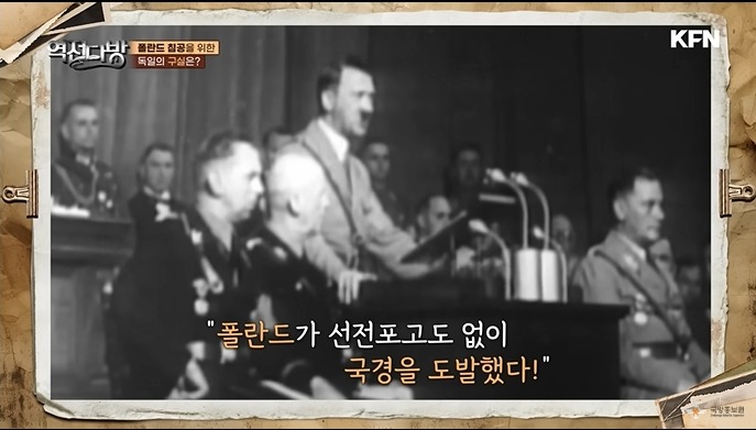 히틀러는 폴란드를 침공하기 위한 명분을 만든다.독일군에게 폴란드군복을 입혀서 도발하게 만든 후 마치 폴란드가 독일을 먼저 친것 처럼 꾸미게 된다.히틀러는 이를 구실로 폴란드군을 혼내주겠다며 1939년 9월 1일 폴란드를 기습 침공한다.단치히 항구에 폴란드 요새가 첫 타격이 된다.독일공군은 첫날 폴란드의 기간시설을 타격하게 된다.육군은 히틀러의 명대로 여러 방면에서 진군을 하기 시작한다.