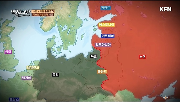 히틀러가 체코를 먹어버리고 폴란드에 야욕을 보이자 영국과 프랑스는 경고에 나세게 된다.프랑스는 5월 폴란드에게 독일이 침공하면 우리가 나서겠다며 폴란드를 안심시킨다.스탈린도 독일을 두려워 하고 있었다.독일이 거병하면 영국과 프랑스와 힘을 합쳐 독일을 치는 구상을 하게 된다.폴란드는 독일도 싫지만 소련을 더 싫어하는 나라였다.독일을 치러 갈 테니 길을 내주오 하면 순순히 길을 내줄 폴란드가 아니였다.스탈린은 보로실로프를 앞세워 영국과 프랑스 대표단과 협상을 시도한다.하지만 영국과 프랑스 반응은 뜨뜨 미지근 했다.대표단 직책도 낮았고 힘을 합쳐보자 했더니만 투입할 병력에 대해 턱없이 적은 수를 얘기하자 스탈린은 분개한다.히틀러는 이 균열을 놓치지 않게 된다.히틀러는 스탈린에게 폴란드를 반 갈라 나누어 먹자는 제안을 한다.스탈린은 이 제안을 받아들인다.스탈린 생각에는 독일이 소련을 치는 것은 기정사실인데 이 협정으로 시간을 벌었다 생각한다.그리고 독일이 아마 프랑스와도 전쟁을 치룰텐데 그러면 힘이 많이 빠질 것이다.그 때 우리가 동쪽에서 밀면 막대한 이득을 취할 수 있다고 생각한다.히틀러는 원래 술을 못하는데 협정이 성사되자 술 한잔 했다는 일화가 전해진다.독일은 소련으로부터 식량,고무,석유등 많은 천연자원을 얻어가게 된다.