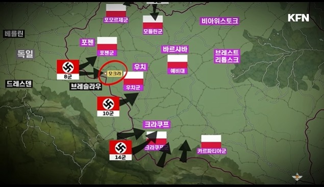 모크라에서도 비슷한 일이 벌어진다.폴란드 기병대는 37mm 대전차포를 배치하고 독일군이 들어오기를 기다리게 된다.폴란드 기병대는 독일 전차와 보병이 사거리 안에 들어오자 일제히 사격을 실시 독일군 공세를 저지시키게 된다.전차도 스티로폼 구멍 뚫리듯이 속절없이 관통당하게 된다.이 당시 독일 1,2호전차는 방어력이 형편없었다.