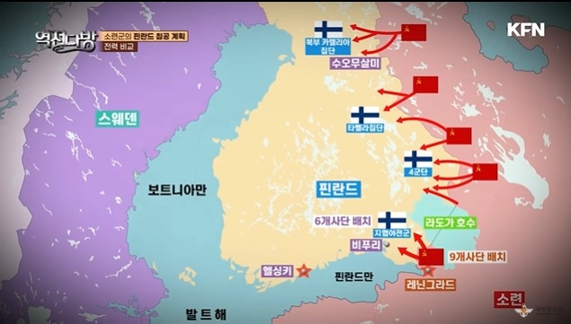 핀란드 핵심지역은 바푸리였다.이 지역을 중심은 그나마 농사를 지을만 해서 인구가 몰려 있었다.소련측 제안이라면 여기를 내주어야 해는데 그러면 핀란드 국민들은 헬싱키나 아무것도 없는 북쪽에서 엄동설한의 기후에 맞써며 살아야 한다.핀란드는 소련의 침공에 대비해 만네르해임선을 구축한다.140km 정도 거리였다.방어선을 구축하는데 돈이 없고 인구가 적어 나무로 요새를 구축해 놓게 된다.용치도 만들게 된다.콘크리트가 아닌 돌을 가져다 놓게 된다.중요거점만 이렇게 해놓고 나머지 부부은 구멍이 뚫린채로 놔두게 된다.핀란드는 병력을 각 요새로 빠르게 이동하면서 클러스터 방어를 하려 들게 된다.소련은 핀란드 칠 구실을 만들기 위해 마이닐라에 포격 사건을 일으킨다.핀란드군의 포격으로 소련군이 죽었다며 말도 안되는 구실로 핀란드를 침공한다.