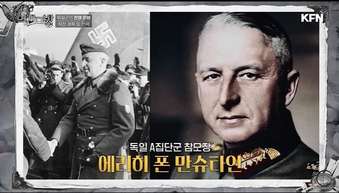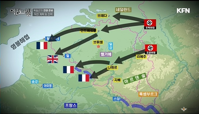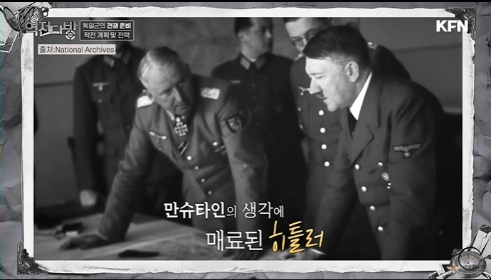 독일이 선을 넘어섰다고 생각한 영국과 프랑스는 독일에 선전포고를 한다.히틀러는 프랑스의 일전을 준비하고 장군들을 닥달하여 작전을 만들어 오라고 한다.1차대전 슐리펜 계획과 별다름 없는 작전이 튀어나온다.달라진 게 있다면 기계화 보병이라는 것이였다.히틀러는 탐탁치 않게 생각한다.잘못해서 프랑스라는 수렁에 빠지면 소련은 어떻게 먹냐는 것이다.히틀러의 고민을 만슈타인이 풀어준다.프로이센 귀족 출신이지만 약간의 돌아이 기질이 있는 장교였다.아르덴숲으로 전차를 몰아 단기에 연합군을 포위하는 작전을 생각하게 된다.