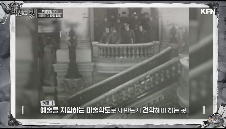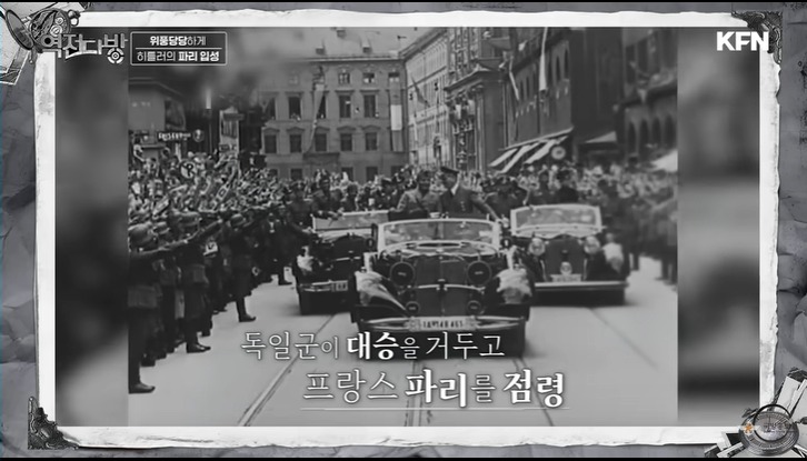 보불전쟁 당시 독일은 승리 퍼레이드를 파리에서 했다.이번에도 거한 기념식을 개최하게 된다.히틀러가 프랑스 침공했을 때 많은 국민들이 에이 설마하고 이랬는데 승전보가 전해지자 모든 독일인들이 열광하게 된다.히틀러는 파리로 달려가 승리에 도취되게 된다.나치 선전부는 히틀러의 모든 것을 기록하며 이거를 선전에 대대적으로 이용하게 된다.히틀러는 미술학도였다.에펠탑보다 오페라 가르니에를 더 가고 싶어한다.파리 방문동안 여기를 방문하며 매우 기뻐한다.