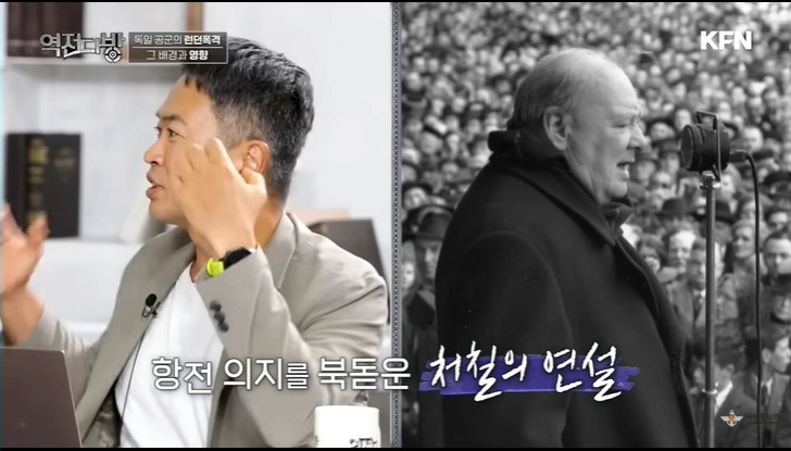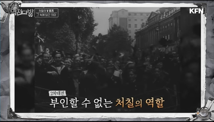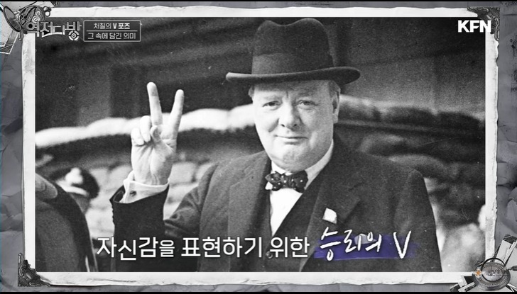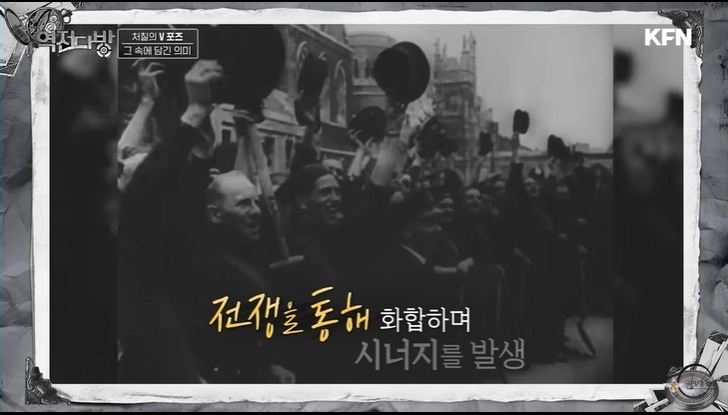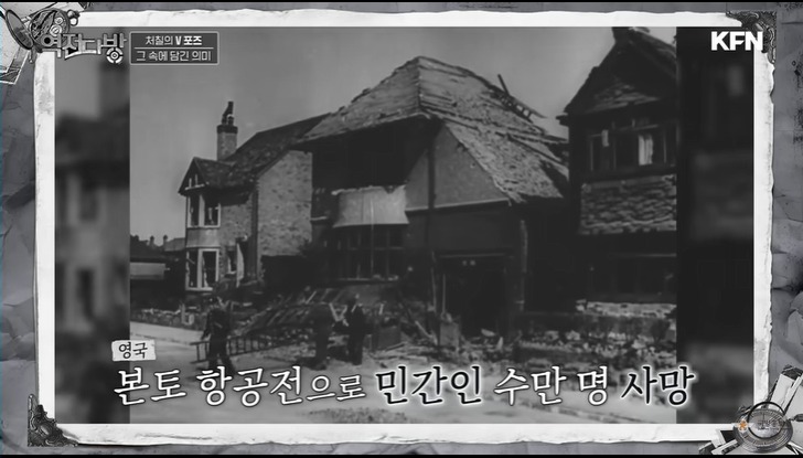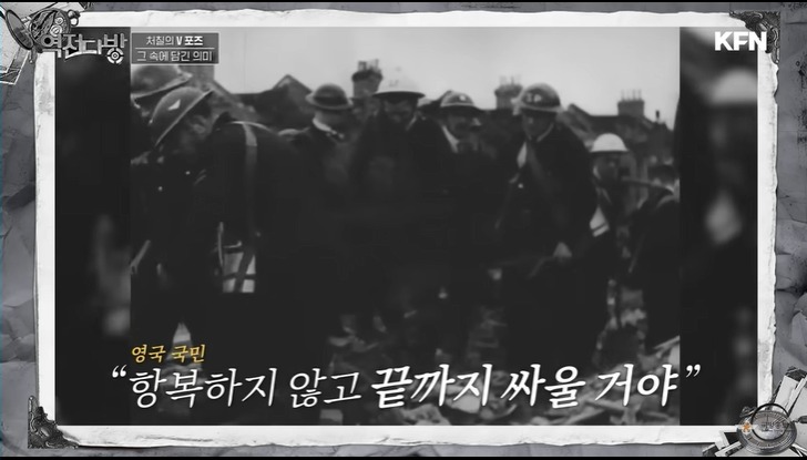 영국 국민의 구심점은 처칠이였다.처칠은 브이 사인을 시그니쳐 포즈로 내세운다.이게 근데 욕이였다.영국이 프랑스와 백년 전쟁 당시 프랑스군은 영국의 긴 활에 당했다.두 손가락으로 활을 쏘는 포즈로 이거는 활로 너희를 죽였다는 의미를 내포하고 있다.영국은 전쟁전 서민과 지배계층간에 괴리가 있었다.억양도 다르고 문화도 달랐다.처칠이 욕인지도 모르고 브이자를 날리자 옆에 보고 있던 서민 출신인 비서는 이를 지적해주고 처칠은 브이자 포즈를 손등이 보이게 하는 제스쳐로 바꾼다.이 에피소드가 보여주는 거는 처칠이 지배계층이건 서민이건 영국 국민의 단합을 강조했다는 사실이다.독일에게 만만치 않은 피해를 입었지만 영국은 처칠이라는 구심점으로 독일과의 본토 항공전에 승리하게 된다.