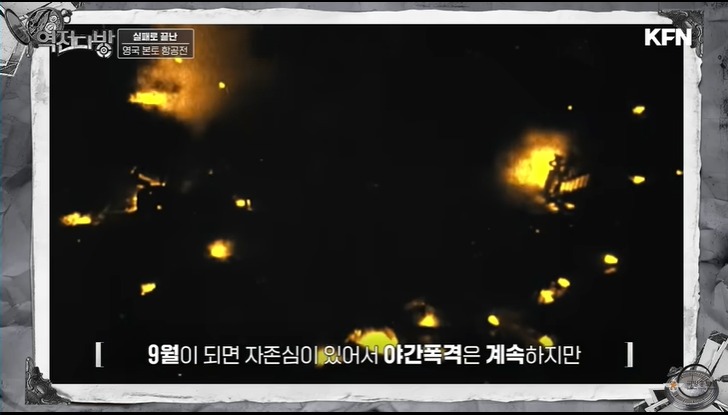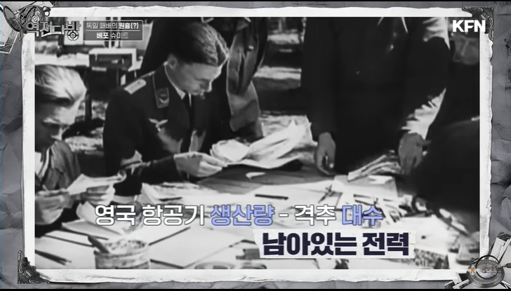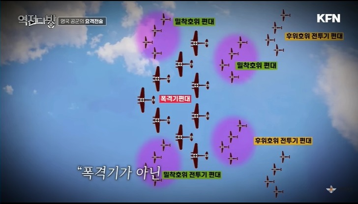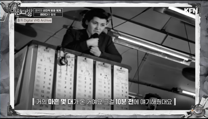 영국은 최신 기술을 선보인다.바로 레이더였다.해안가에 레이다를 촘촘히 배치한다.여기에 방공포,비행장을 유기적으로 연결하는 시스템을 갖추고 있었다.적기가 출현하면 레이다에 걸리고 이 모든 정부가 중앙에 컨트롤 타워로 모였다.이 시간이 그 당시에 불과 40여초였다고 한다.중앙에서는 여성 오퍼레이터들이 적 전투기 움직임을 하나의 상황판에서 기록하게 된다.당시 레이더 성능이 좋지 않아 규모가 얼마인지 파악은 어려웠다.영국은 기다리다 공군기를 한꺼번에 모아 떼로 덤비는 전술을 쓰게 된다.