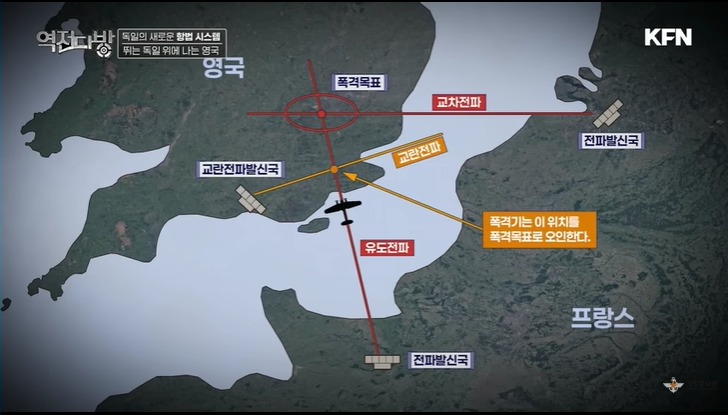 독일은 영국을 폭격하면서 새로운 항법 시스템을 개발하게 된다.민항기 착륙 유도장치를 개선한 크니케바인을 만들게 된다.전파 발신국에서 목표를 딱 맞추고 전파를 쏘면 항공기는 이 전파를 따라 이동하게 된다.전파를 벗어나면 이상한 소리가 나고 정확히 가야만 연속음이 나게 되있다.이런 전파국이 2개 있으면 정확한 위치를 특정할 수 있어서 독일 공군은 정확한 위치에 폭탄을 떨어 뜨릴 수 있었다.영국은 독일의 이런 시스템에 교란 전파를 쏴서 대응한다.그것도 약간만 방해해서 독일 공군이 잘못된 곳에 폭격하는 것을 눈치 못채게 한다.어떤 날은 끄기도 하고 이러면서 교묘히 독일 공군을 속이게 된다.