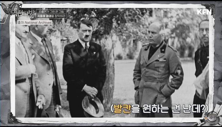 히틀러는 소련 침공 야욕을 숨기면서 외교전을 벌이면서 영국을 어떻게 할까 고민하고 있었다.영국의 중요한 생명줄은 지중해였다.여기를 통해 중동도 가고 인도로 갈 수 있었다.히틀러는 여기서 무솔리니 형님이 좀 해주고 독일이 발칸반도 나라를 영향력 아래에 두면 영국은 지중해 패권을 잃을 것이라 생각한다.무솔리니는 약간 불쾌하게 여긴다.발칸반도는 이탈리아 영향권으로 하려는데 독일이 먼저 침을 발라 놓은 것이다.지중해를 끼고 있는 비시 프랑스는 힘이 빠진 상태였고 드골은 런던으로 망명 자유 프랑스를 세우며 정당성을 주장하고 있었다.