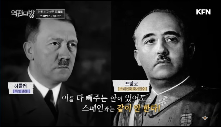 히틀러는 스페인을 포섭할 필요도 있었다.스페인 프랑코는 2차 대전 당시 청색사단을 소련 전선에 파견했다.하지만 적극적으로 대규모 병력을 동원했다거나 이런 것은 없었다.혹자는 프랑코가 2차대전 참전을 안해서 스페인이 참화를 벗어났다 얘기하지만 이거는 그렇지 않았다.프랑코도 독일과 편을 먹고 한 몫 챙기려는 의도가 있었다.앙다예 라는 곳에서 히틀러와 프랑코는 만나서 회담을 갖게 된다.히틀러는 제 시간에 왔으나 프랑코는 1시간 늦게 회담장에 도착한다.프랑코는 회담장에서 요구 조건을 산더미처럼 늘어놓게 된다.영국의 지브롤터를 달라고 하고 프랑스가 가지고 있는 북아프리카도 요구한다.게다가 전쟁에 참가할 테니 전쟁 비용 일체를 독일이 부담하라는 어거지성 주장을 하게 된다.내주는 것은 하나도 없고 요구 사항만 잔뜩 늘어놓으니 히틀러는 프랑코를 손절한다.