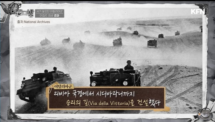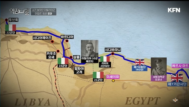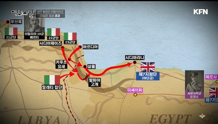 이탈리아 마르코니는 무선 통신을 개발했다.그리고 미국으로 가서 사업을 하게 된다.무선통신의 종주국인 이탈리아는 전차에 무전기가 없었다.오토바이 탄 전령이 연락병 역할을 했다.실전 경험도 사막의 원주민 대상이 전부였다.영국은 실전 경험이 엄청났다.1차대전부터 잔뼈가 굵은 군대였다.항공기 운용 역시 영국이 앞서가고 있었다.항공 정찰을 잘했다.사막의 날씨에 대비해 엔진에 필터를 장착해 고장을 줄였다.영국군은 사막전을 할 만반의 준비가 된 것이다.영국군은 정보전도 한 수 위였다.이탈리아군의 통신을 감청 암호를 해독하며 적의 동태를 알고 있었다.