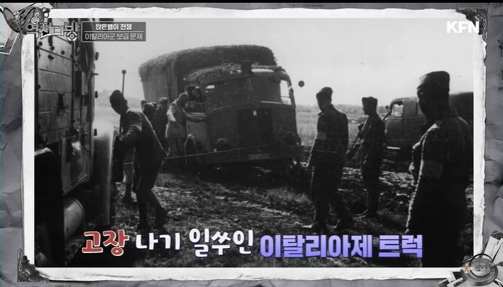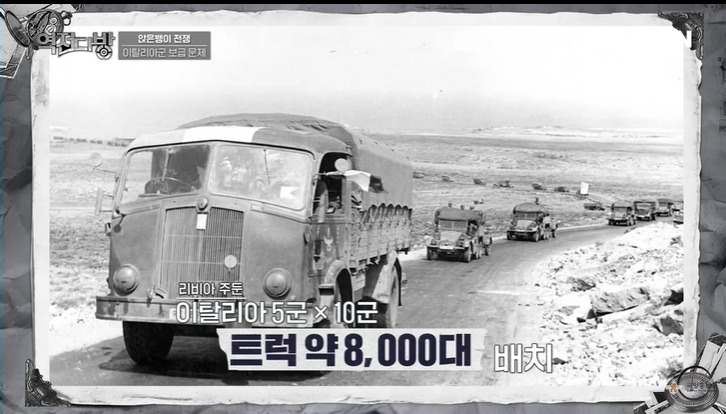 영국군은 당황한다.더 깊숙히 들어와야 하는데 안들어오고 캠핑을 즐기고 있으니 환장할 노릇 이였다.이탈리아도 나름 고충이 있었다.보급거리가 거의 1000km 였다.중간에 도시도 없고 뭔가 아무 것도 없었다.리비아에서 트럭이 한 8000대를 동원했는데 이게 부족했다.km 당 따지면 트럭 수는 택도 없는 수준이였다.여기에 트럭이 사막에서 퍼지면서 보급난은 심해진다.식수문제도 심각했다.이탈리아는 장교 조리병을 따로 둔다.이 조리병은 최소한 2가지 이상의 파스타를 할 수 있어야 했다.라면은 물 500ml 면 끓일 수 있지만 파스타는 1리터 정도의 물이 필요했다.빵도 새벽에 구워야 했다.지금도 이탈리아군의 보급품에 파스타는 필수이다.그만큼 먹는 것에 진심인 이탈리아였다.보급난에 시달리자 그라치아니는 노새라도 보내달라고 간청하게 된다.무솔리니는 뭘 얼마나 더 달라는 거야 하며 닥달하고 그라치아니는 3개월 후 12월 중순경에 전진하겠다고 마지못해 보고를 올리게 된다.