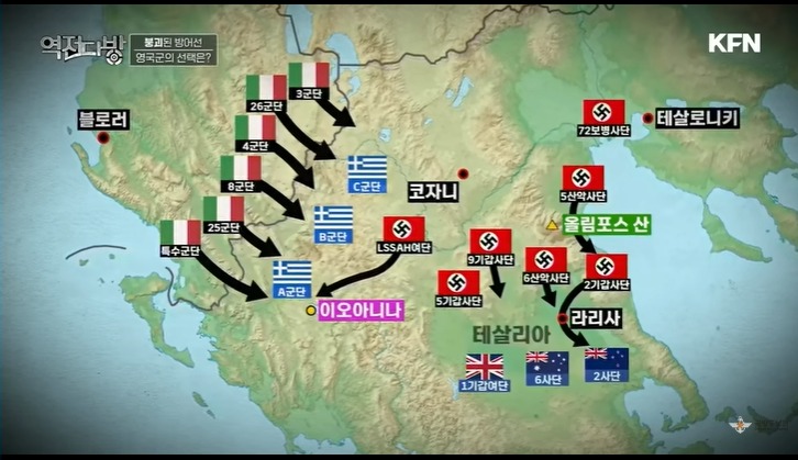 영연방군은 올림포스산 부근에 진을 형성하고 독일의 진격을 늦추려 하게 된다.도로 사정이 좋지 않은데 마구잡이 진격을 한다.철길 위로 차량들을 올린 후 덜컹덜컹 거리면서 진격적을 펼치게 된다.독일군은 이탈리아군과 차원이 다른 공격력을 선보이고 있었다.남하도 하면서 서진도 하면서 그리스를 난도질 하고 있었다.영국군은 이대로 가다가 다 죽는다며 그리스 포기를 결정하게 된다.