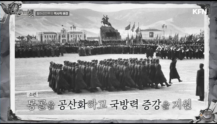만주옆에 몽골은 청나라 시대 청나라 영토였으나 이 둘이 분리되어 내몽골과 외몽골이 된다.소련은 외몽골을 도와서 나라를 세우게 하는데 힘을 보태게 된다.일본은 만주국이라는 괴로 정부를 세우고 대륙으로 힘을 투사하고 있었다.그럴러면 몽골을 거쳐 러시아로 들어가야 했다.소련은 이런 일본의 야심을 제어할 필요가 있었다.외몽골에 지원을 해주면서 일본에 견제구를 날리고 있었다.
