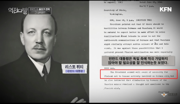 소련이 침공 당하기 전인 1941년 1월 핀란드 주재 미국 대사 쇼엔펠드는 핀란드 대통령에게 차관 얘기를 꺼내면서 독일에게 가담하지 말라고 압박을 주게 된다.6월에 핀란드가 동원령을 선포 군을 움직이려 하자 미국 대사는 하지마라고 얘기하게 된다.핀란드 대통령은 외교경로를 통해 자신들의 심정을 밝히게 된다.핀란드는 독일에게 적극 가담하지 않을 것이지만 독일이 소련을 제거해 준다면 그 또한 우리에게 나쁘지 않다라는 솔직한 심정을 전달한다.