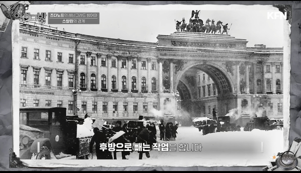독일군은 레닌그라드로 접근할 수록 저항이 너무 심하자 인간 방패 작전을 쓰게 된다.아이들 노약자 여성들을 앞세워 진격을 하게 된다.주코프는 독일군을 공격하려면 인간방패를 없애야 하는데 이들은 자국민이였다.스탈린에게 어떻게 하냐고 묻자 스탈린은 감상주의에 빠지지 말고 모두 죽이라 명하게 된다.인간방패 작전이 성공하면 독일은 위기 상황에 몰릴 때 마다 소련 국민을 볼모로 돌파를 시도할 것이고 그러면 더 많은 소련인이 죽을 수 있었다.스탈린과 히틀러 모두 독한 놈이였다.독일과 소련은 양국 국민들 다 죽어야 끝난다는 인식이 머리에 박히게 된다.