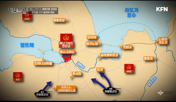 육지로 레닌그라드로 접근하는 길은 모두 막히게 된다.레닌그라드 시내로 소련군이 들어오자 보로실로프는 권총을 들고 직접 나가 후퇴하지 말고 자리를 지키라고 병사들을 독려하게 된다.보로실로프는 앞에서 병사들을 갈굼으로써 군인으로써 강인함을 내세웠지만 뒤에서는 두려움에 떨고 있었다.레닌그라드가 포위된 거를 스탈린 친구가 알았다가 총살당하는 거 아니냐며 안절부절하고 있었다.