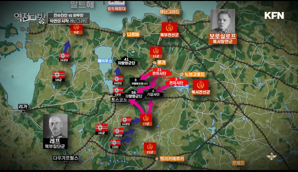 독일 북부 집단군은 파죽지세로 소련 영토 깊숙히 들어간다.4기갑집단은 전차를 몰고가며 빠른 속도로 진격하나 이 기갑부대를 측면에서 지원하는 보급과 보병은 그 속도를 따라가지 못하게 된다.4기갑집단은 페이스 조절을 하게 되고 소련은 이 기회를 이용 전선을 재정비하게 된다.스탈린은 총애하는 보로실로프를 레닌그라드관할 북서방면군 책임자로 내려 보내게 된다.스탈린은 그간 전쟁에서 실수를 많이 저질러서 유능한 참모도 같이 딸려보낸다. 그가 바투틴이였다.바투틴과 만슈타인은 정면 충돌하게 되고 이 후에도 많은 합을 겨루게 된다.