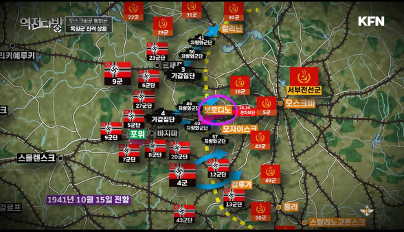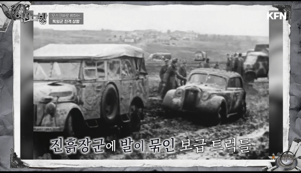 독일군은 보급도 어려워진다.진흙으로 트럭이 잘 안움직이게 된다.소련군은 곳곳에서 독일의 보급로를 노리면서 독일군은 식량까지 부족해 진다.10월25일에는 비행기가 빵을 공급해 줄 정도였다.남부 역시 진흙에 고전하고 있었다.구데리안은 므첸스크에서 한 펀치 얻어 맞고 진흙 장군을 만나게 된다. 카투코프는 상부에서 잘막는다며 모자이스크로 불러들여 독일군을 괴롭히게 된다.소련의 이런 진흙을 라스푸티차 라고 한다.소련같은 저개발 국가는 도로보다 철도망을 우선시 했다.물자 운송은 철도가 짱이였다.도로가 후순위다보니 비포장도로가 많고 라스(~가 없다)푸트(길)이차 (길이 없어진 상태)가 잘 생기는 것이였다.