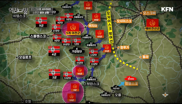 우리나라가 6.25 때 육사 생도가 투입해서 북한군 남진을 막으려 했듯 소련군 역시 사관생도들이 투입된다.목표는 모자이스크 방어선을 구축하기 전까지 독일군 진격을 막는 것이다.5일을 버티라 했으나 무려 12일 동안 독일군을 붙잡고 늘어지며 방어선 구축에 힘을 보태게 된다.민병대도 애를 쓰게 된다.징집 안된 남자들이 민병대를 자처 하며 정규군이 방어라인을 잡을 때까지 나가서 싸우며 희생하게 된다.거의 70%의 인원이 작살나게 된다.이 시기들어서는 소련군이 끝까지 항전하는 사례가 많아진다.독일군이 소련군 포로 대하는 방식이 매우 안좋았다.어차피 잡히면 죽는다며 죽기 살기로 덤벼드는 것이였다.결국 독일의 태풍작전을 10월31일에 잠시 멈추게 된다.