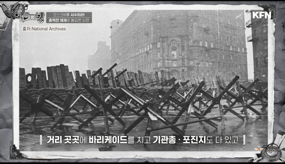 모스크바 관공서에서는 중요 문서를 불태우게 된다.시민들은 더 불안에 빠지게 된다.엔카베데 총수 베리야는 식량을 무상으로 나누어 주라는 명을 내리지만 모스크바 시민들은 서로 약탈하며 자기 몫을 챙기고 있었다.공권력은 무너지고 시내 곳곳에 방화가 일어나게 된다.엔카베네는 불손 세력을 잔혹한 방법으로 색출하여 처형한다.10월16일에는 나치당 노래가 방송을 통해 나오게 된다.방송 사고 였는데 지금도 그 이유는 모른다.사람들은 독일이 이미 들어온거 아니냐며 더더욱 멘탈이 나가며 날뛰게 된다.1941년 10월 17일 스탈린이 나선다.자신은 모스크바를 버리지 않겠다는 것이다.스탈린이 전황을 바꾼 2번의 사건이 있는데 하나가 모스크바 남겠다는 이 날 결심하고 나중에 펼쳐질 스탈린 그라드 전투 당시 명령 22호였다.